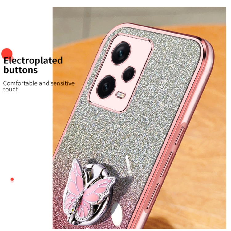 Para Redmi Note 12 Pro + Estuche para Teléfono de TPU con Soporte de Mariposa con Brillo Degradado Plateado Global (Negro)