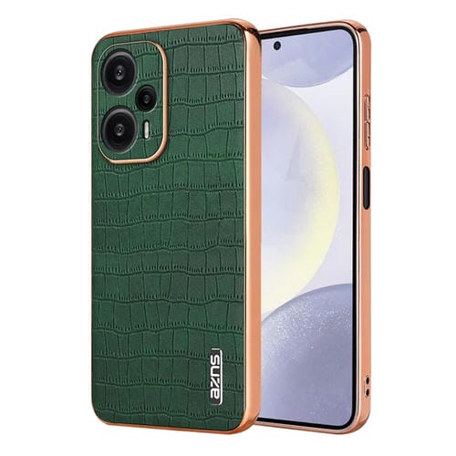 Para Redmi Note 12 Turbo Azns Marco Galvanizado Textura de Cocodrilo Estuche para Teléfono de Cobertura Total (Verde)