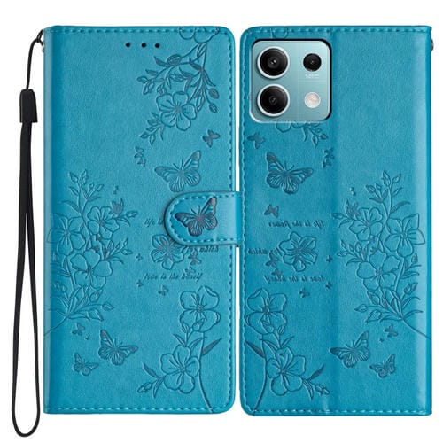 Para Redmi Note 13 5G Funda de Cuero para Teléfono con Mariposas y Flores (Azul)