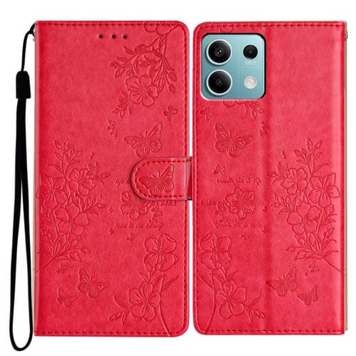 Para Redmi Note 13 5G Funda de Cuero para Teléfono con Mariposas y Flores (Rojo)