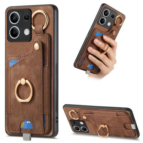 Para Redmi Note 13 5G Funda para Teléfono con Bolsa para Tarjeta con Anillo y Sensación de Piel Retro con Lazo para Colgar (Marrón)