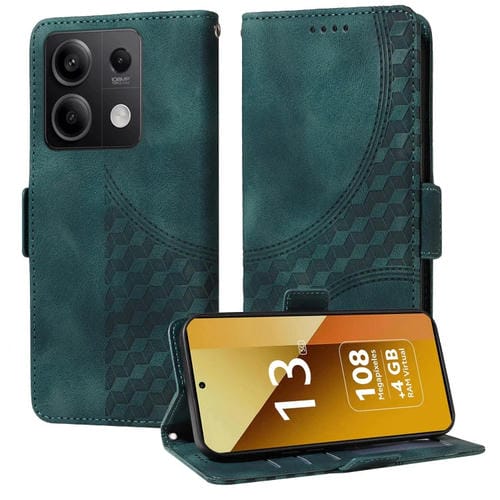 Para Redmi Note 13 5G Funda para Teléfono de Cuero Estrellado con Rombos En Relieve (Verde)