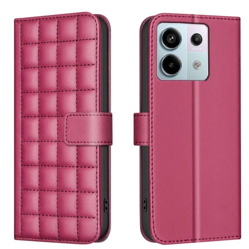 Para Redmi Note 13 Pro 5G Funda de Cuero para Teléfono con Textura Cuadrada (Rojo)