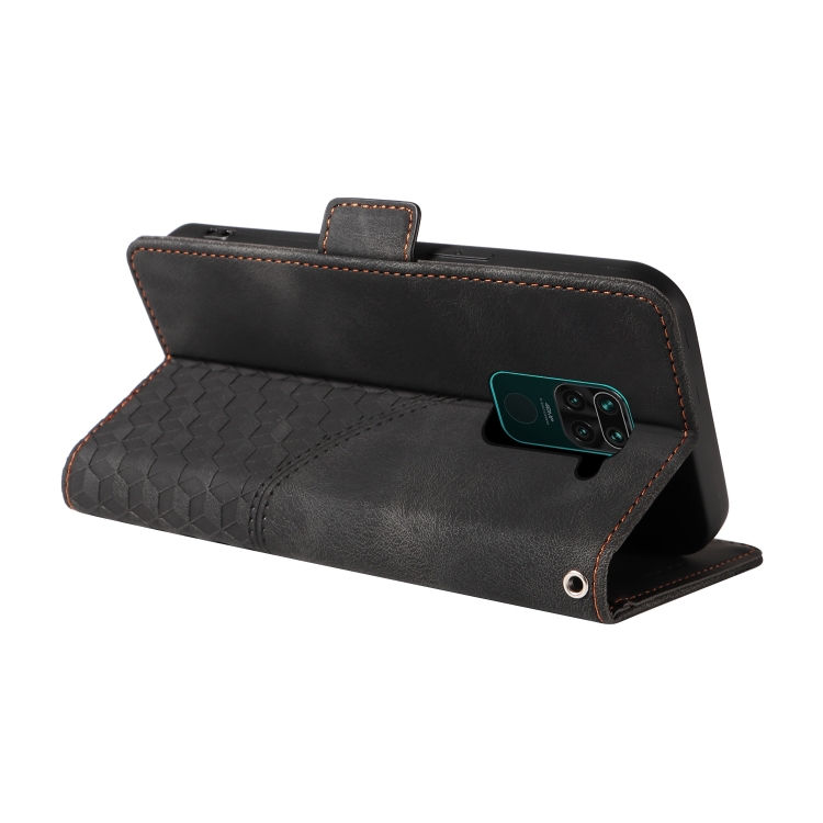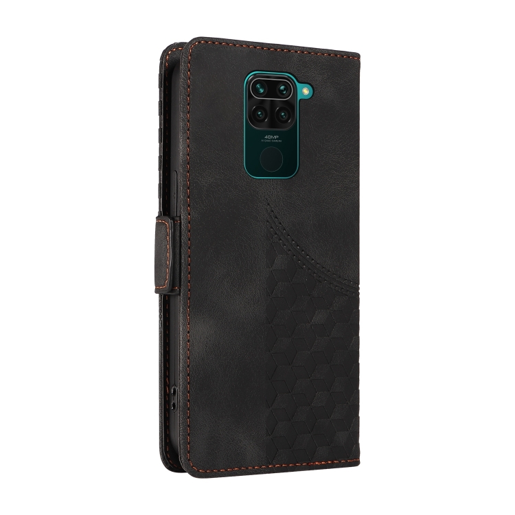 Para Redmi Note 9 4G Funda de Teléfono de Cuero Estrellado con Rombo En Relieve Global (Negro)