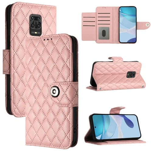 Para Redmi Note 9 Pro / Note 9 Pro Max Funda para Teléfono con Tapa de Cuero con Textura Rómbica y Cordón (Rosa Coral)