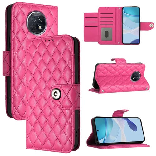Para Redmi Note 9T Funda de Cuero con Tapa para Teléfono con Textura Rómbica Global y Cordón (Rojo Rosa)