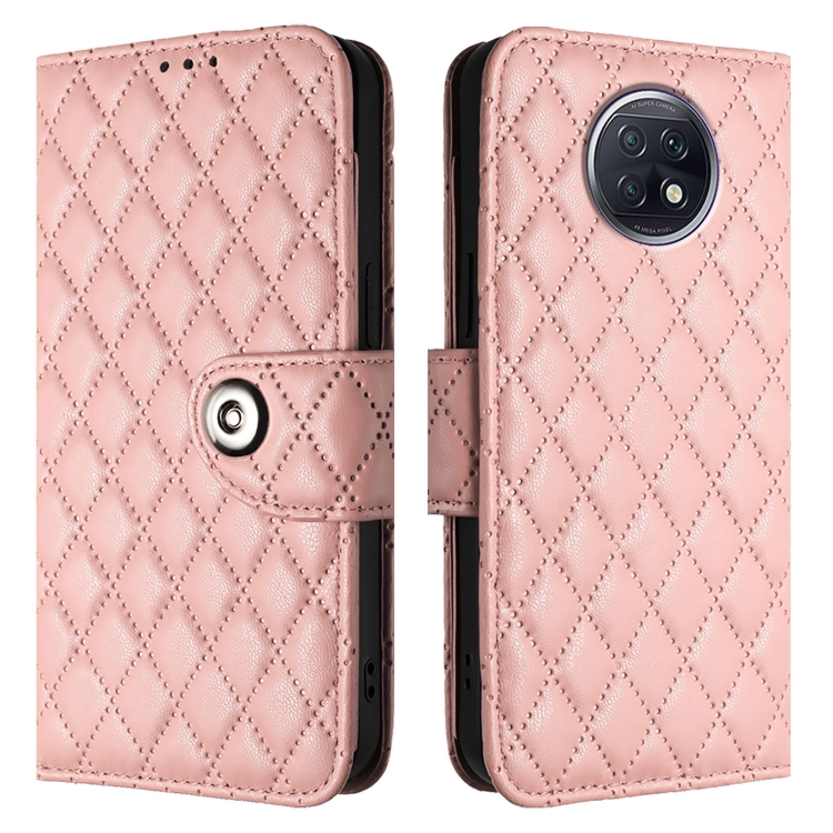 Para Redmi Note 9T Funda de Cuero con Tapa para Teléfono con Textura Rómbica Global y Cordón (Rosa Coral)