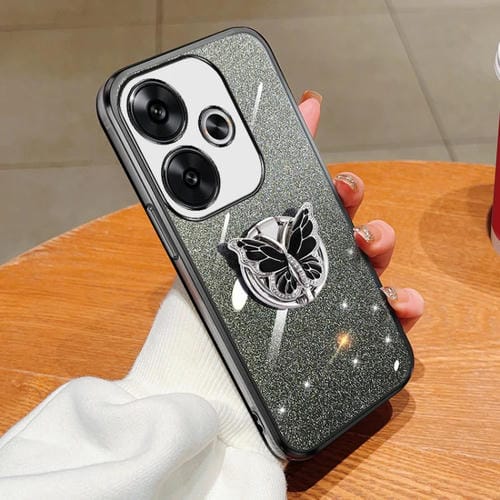 Para Redmi Turbo 3 Estuche para Teléfono de TPU con Soporte de Mariposa con Brillo Degradado Plateado (Negro)