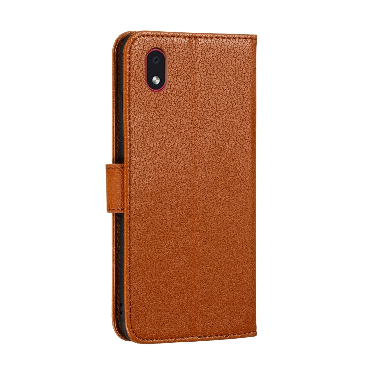 Funda de Cuero para Samsung Galaxy A01 Core con Tapa Horizontal, Billetera y Soporte (Marrón)