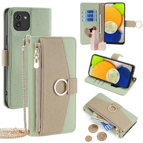 Funda de Cuero Samsung Galaxy A03 Global Crossbody Litchi Texture para Teléfono (Verde)