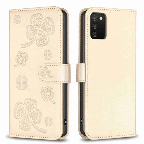 Funda para Teléfono Samsung Galaxy A03S A02S Cuero Relieve Cuatro Hojas (Dorado)