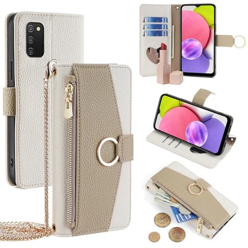 Funda para Teléfono Samsung Galaxy A03S Cuero Textura Crossbody Litchi (Blanco)