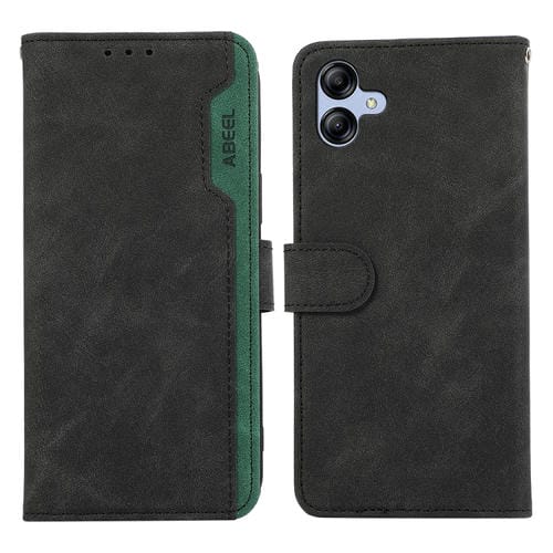 Funda de Cuero Abeel para Samsung Galaxy A05 4G Color Block Magnética Rfid (Negro-Verde)