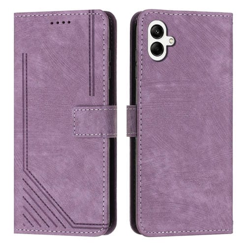 Funda de Cuero para Samsung Galaxy A05 Skin Feel con Patrón de Rayas y Cordón (Púrpura)