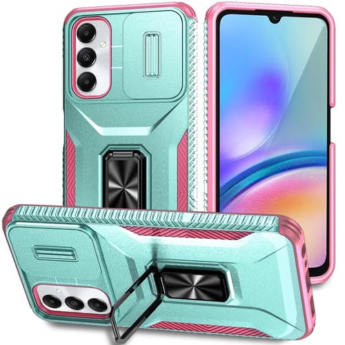 Estuche para Teléfono Samsung Galaxy A05S con Soporte Deslizante para Levas (Gris Verde + Rosa)
