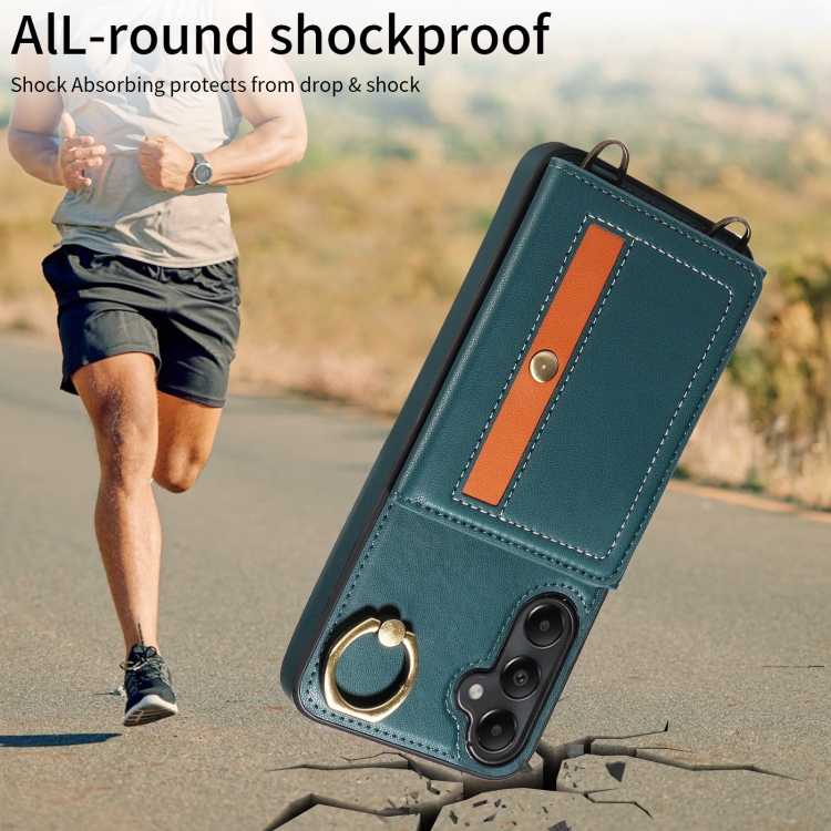 Funda Tipo Billetera Samsung Galaxy A05S Cuero con Soporte para Anillo (Verde)