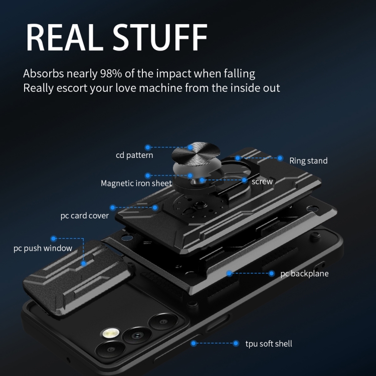 Funda para Teléfono Samsung Galaxy A05S Sliding Camshield TPU + PC con Ranura para Tarjeta (Oro Rosa)