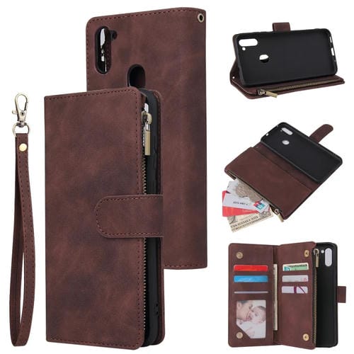 Estuche para Teléfono Samsung Galaxy A11 Us Cuero con Billetera y Cremallera Multifuncional (Café)