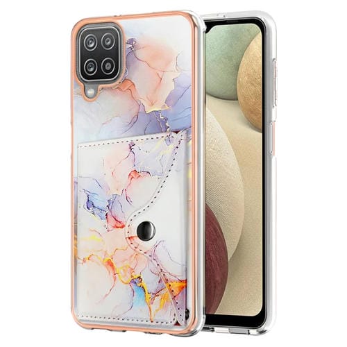 Estuche para Teléfono Samsung Galaxy A12 con Ranura para Tarjeta Imd y Patrón de Mármol (Blanco)