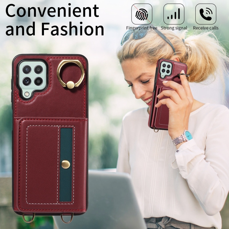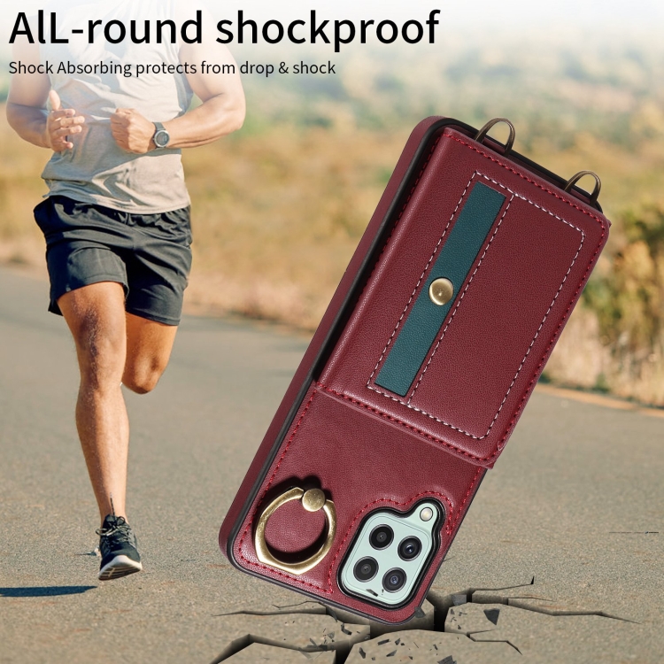 Funda Tipo Billetera Cruzada Samsung Galaxy A12 con Soporte para Anillo y Cuero (Rojo)