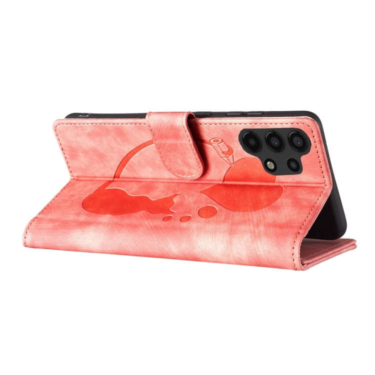 Estuche para Teléfono Samsung Galaxy A13 4G 5G A04 Cuero Relieve Gato Corazón Bolígrafo (Naranja)