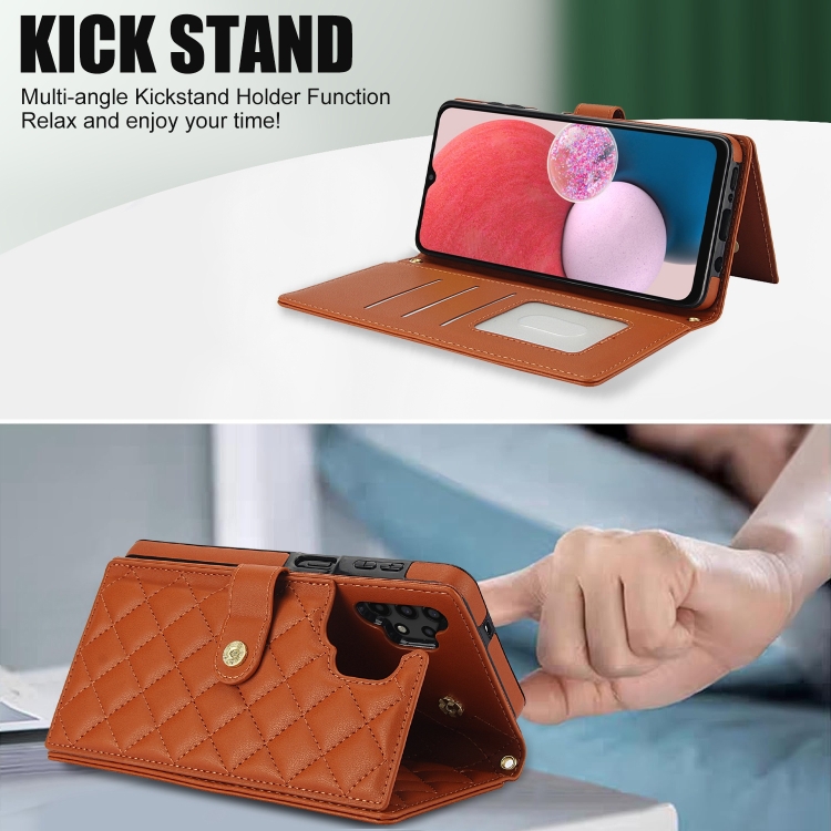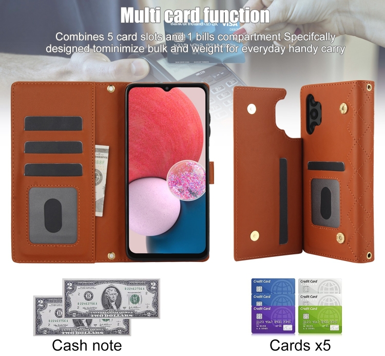 Estuche para Teléfono Samsung Galaxy A13 4G 5G Crossbody Cuero Rómbico Multifunción (Marrón)