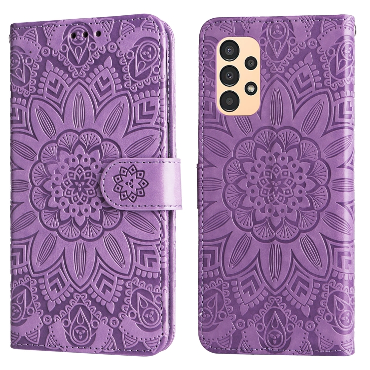 Estuche para Teléfono Samsung Galaxy A13 4G Cuero Estampado de Girasol en Relieve (Púrpura)