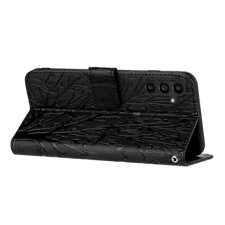 Funda para Teléfono Samsung Galaxy A14 Cuero Patrón En Relieve Tree Birds (Negro)