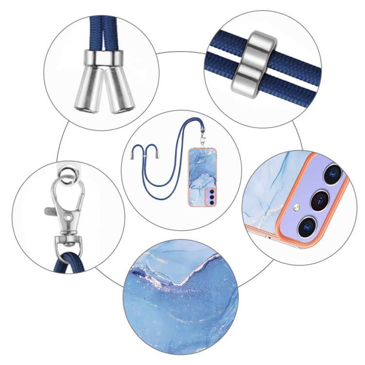Estuche para Teléfono Samsung Galaxy A15 5G Imd Doble Cara Mármol Galvanizado con Cordón (Azul)