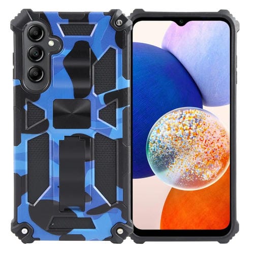 Funda para Samsung Galaxy A15 Camuflaje Armor Kickstand TPU + PC Magnética (Azul Oscuro)