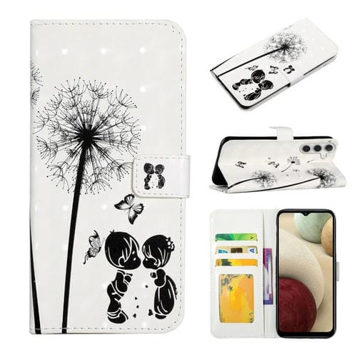 Funda de Cuero Samsung Galaxy A15 Dibujo 3D en Relieve al Óleo (Pareja de Diente de León)