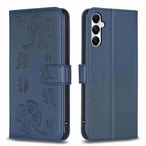 Funda de Cuero Samsung Galaxy A15 con Relieve de Cuatro Hojas (Azul)