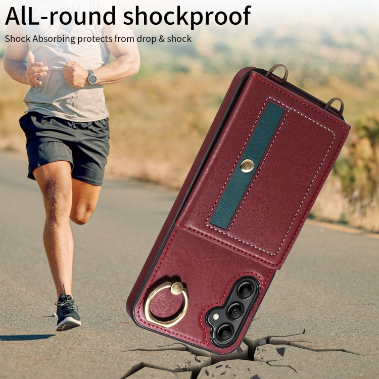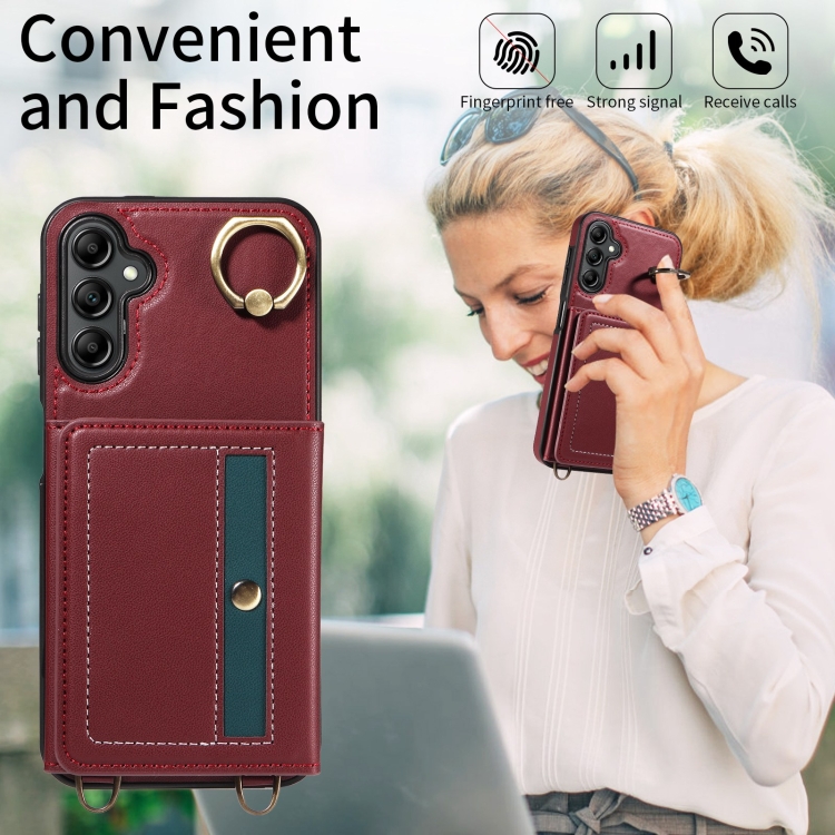 Funda Tipo Cartera Cruzada Samsung Galaxy A15 con Soporte para Anillo Funda de Cuero (Rojo)