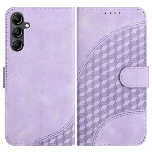 Funda de Cuero Samsung Galaxy A15 Yx0060 con Relieve de Cabeza de Elefante y Cordón (Púrpura Claro)