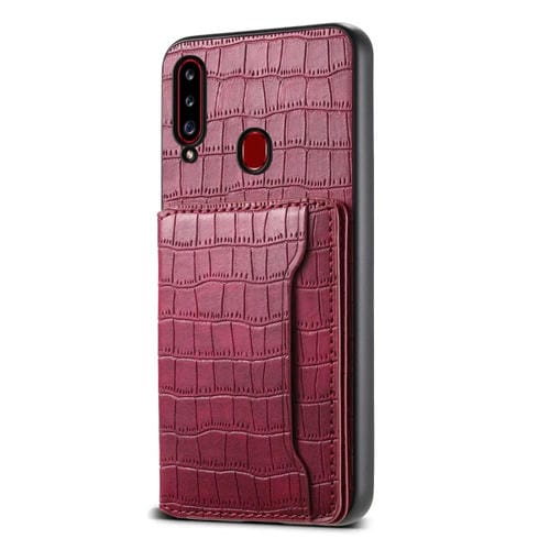 Estuche para Teléfono Samsung Galaxy A20S Diseño Bolsa para Tarjetas Textura Cocodrilo (Rojo)