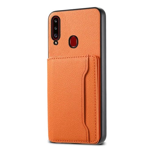 Funda para Teléfono Samsung Galaxy A20S Diseño Bolsa para Tarjetas Textura Pantorrilla (Naranja)