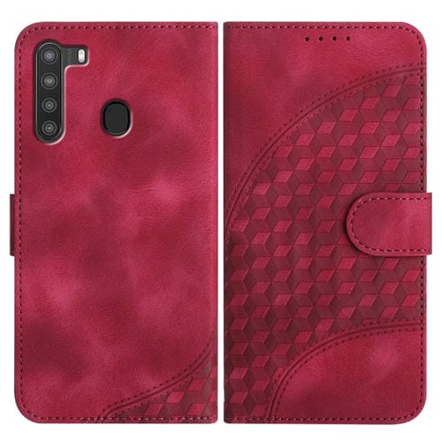 Funda de Cuero Samsung Galaxy A21 Versión UE Yx0060 con Relieve Cabeza de Elefante y Cordón (Rojo Rosa)