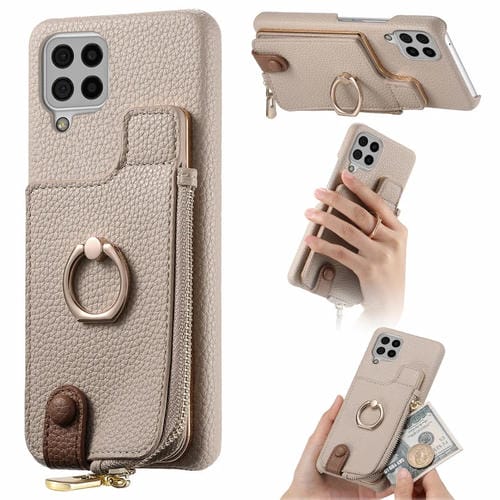 Funda para Samsung Galaxy A22 4G Litchi Leather Oil Edge Ring Zipper Wallet Back (Blanco)