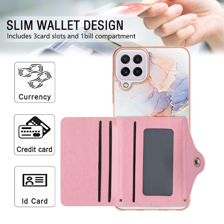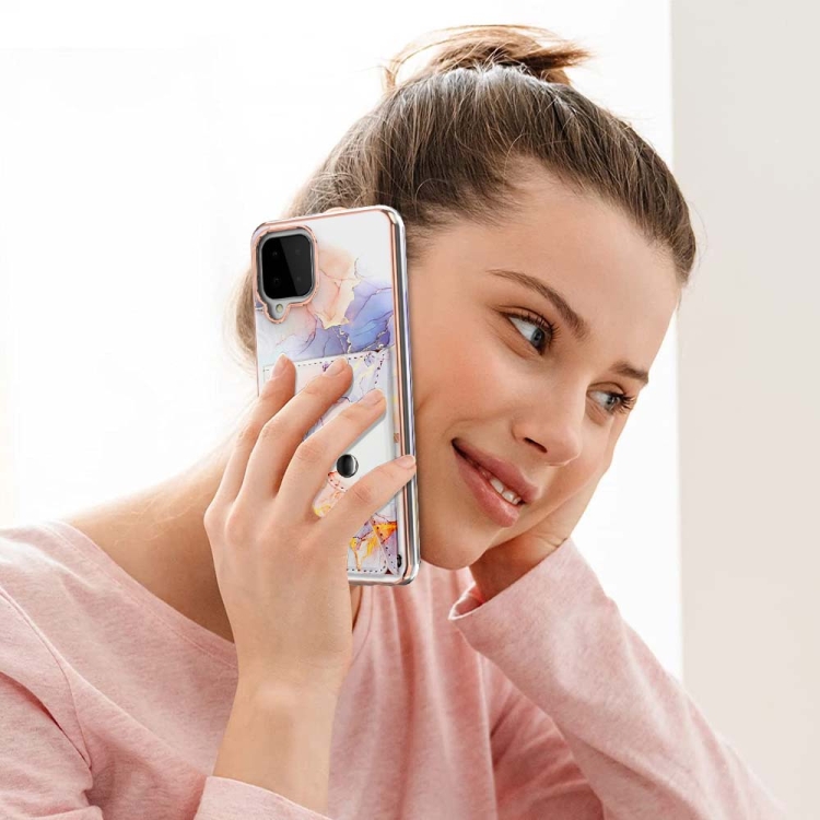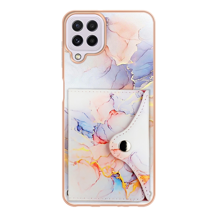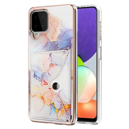Estuche para teléfono Samsung Galaxy A22 4G Versión UE con ranura para tarjeta y patrón de mármol (Blanco)