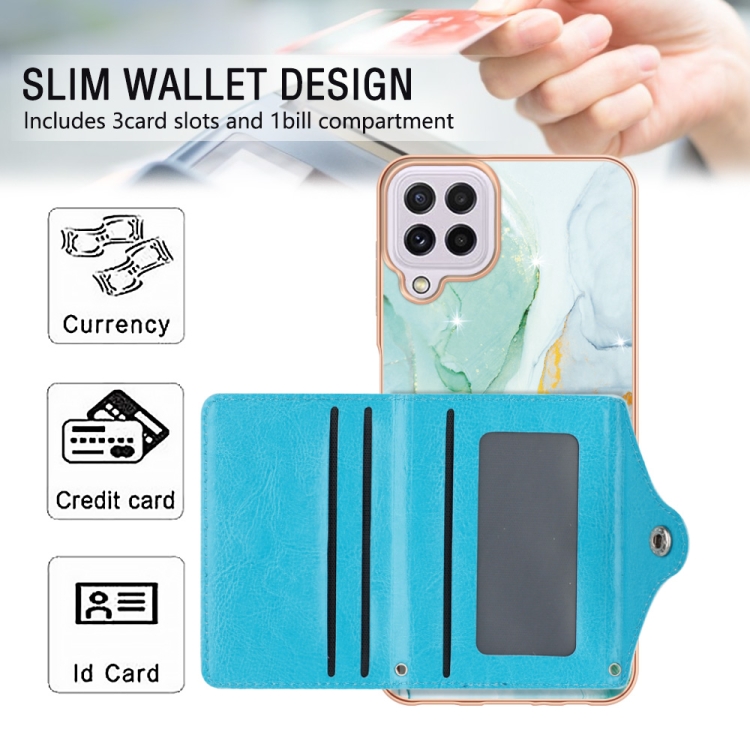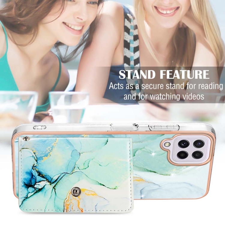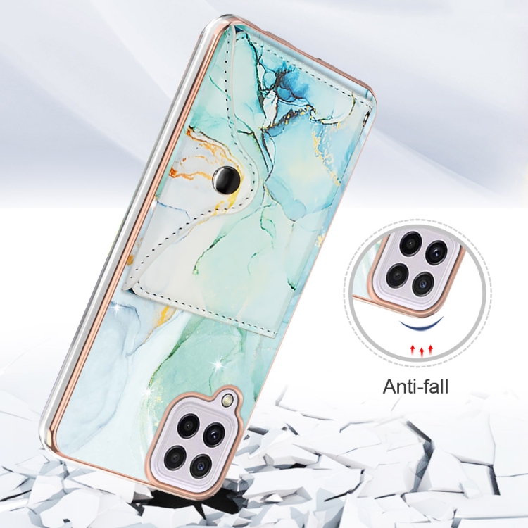 Estuche para Teléfono Samsung Galaxy A22 4G Versión UE con Ranura para Tarjeta Imd y Patrón de Mármol (Verde)