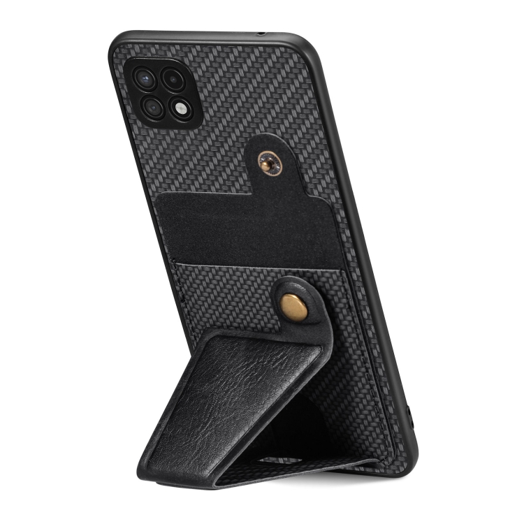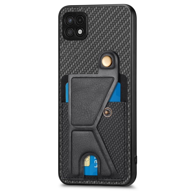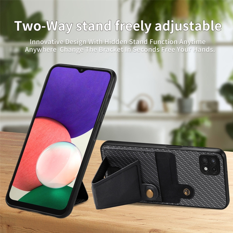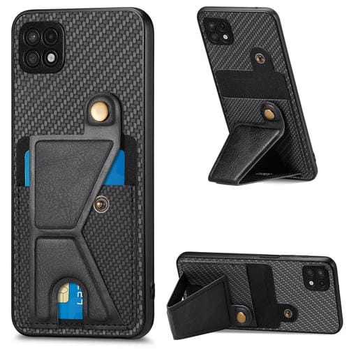 Funda Cartera Samsung Galaxy A22 5G Fibra de Carbono Flip Card con Soporte en Forma de K (Negro)