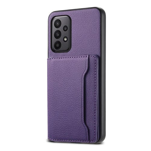 Estuche para Teléfono Samsung Galaxy A23 con Diseño de Bolsa para Tarjetas con Textura de Becerro (Púrpura)