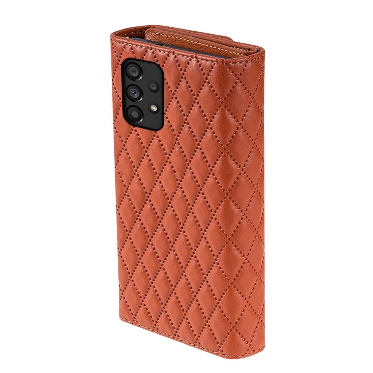 Estuche para Teléfono Samsung Galaxy A23 Cuero Rómbico con Billetera MultiTarjeta y Cremallera (Marrón)