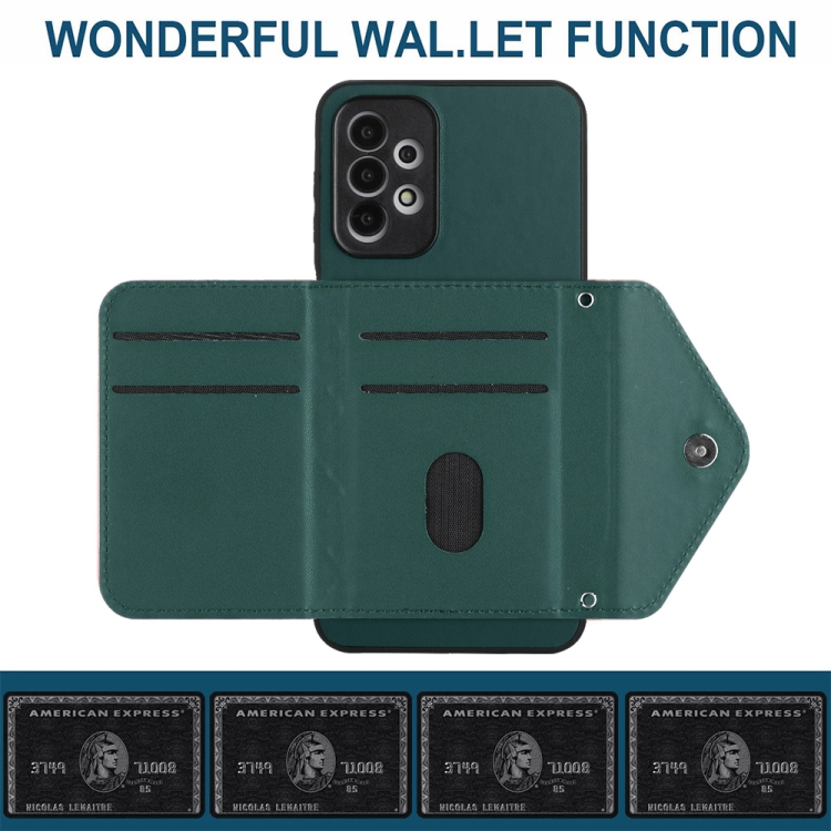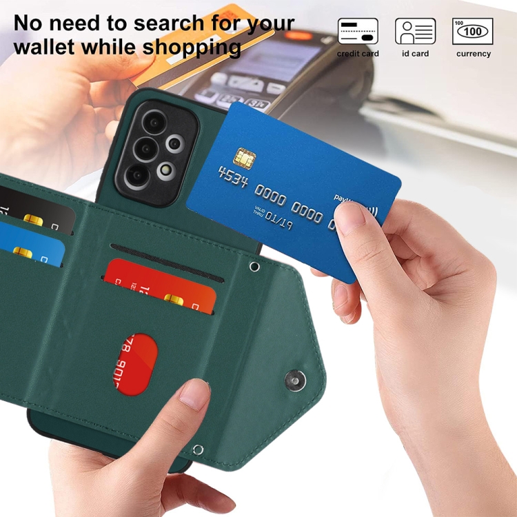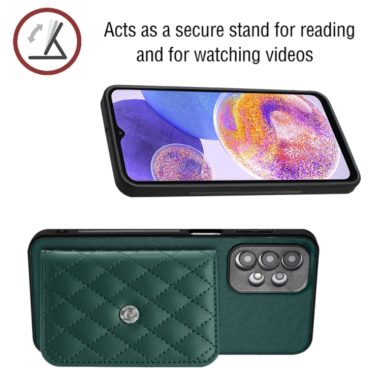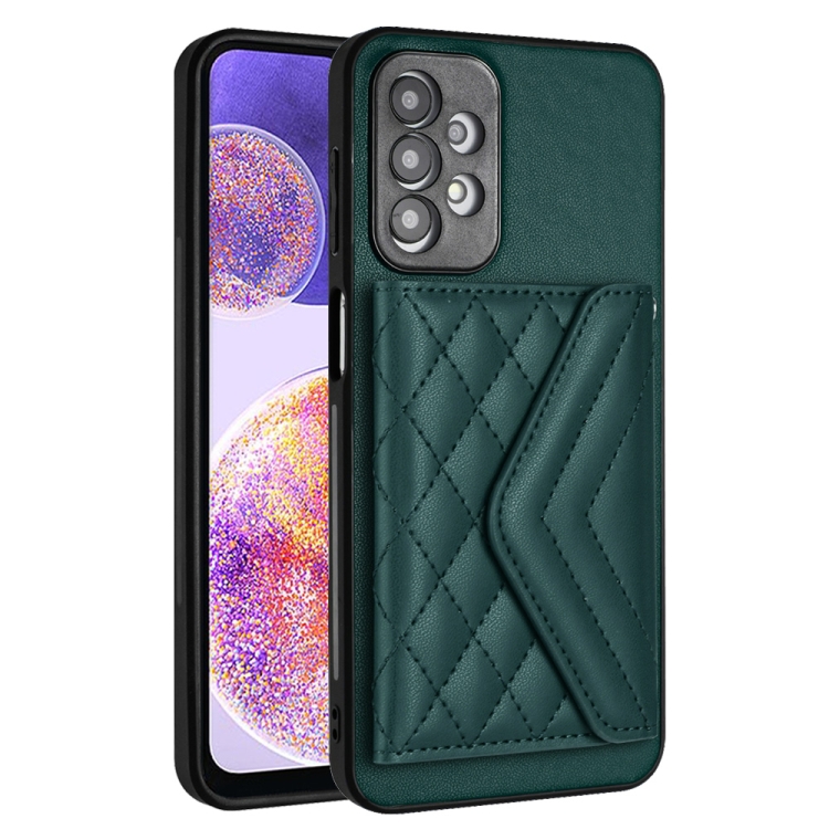 Estuche para Teléfono Samsung Galaxy A23 Rfid con Bolsa para Tarjetas Textura Rómbica y Cordón Largo (Verde)