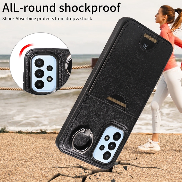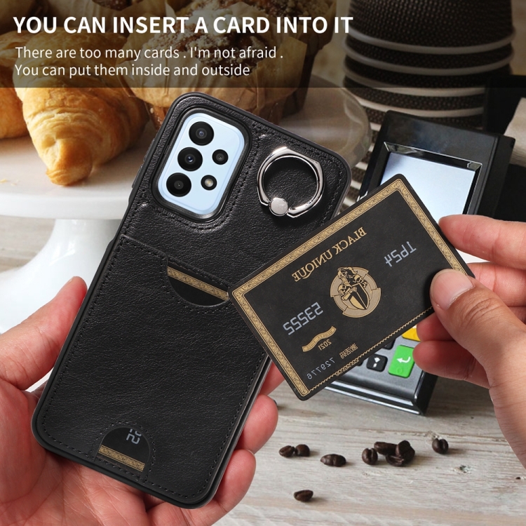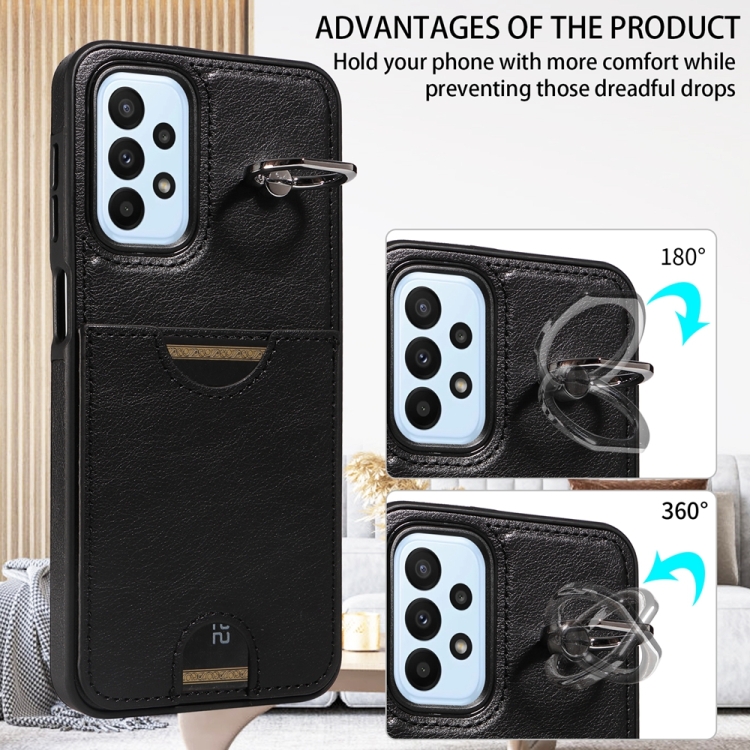 Funda para Teléfono Samsung Galaxy A23 con Soporte anillo y Ranura para Tarjeta (Negro)
