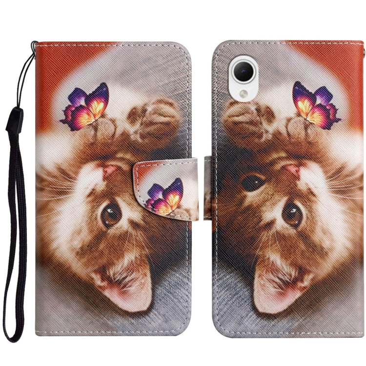 Estuche de Teléfono Samsung Galaxy A23E Cuero con Patrón Dibujo Coloreado (Gato Mariposa)