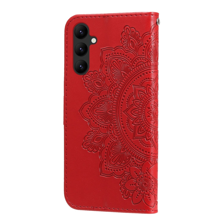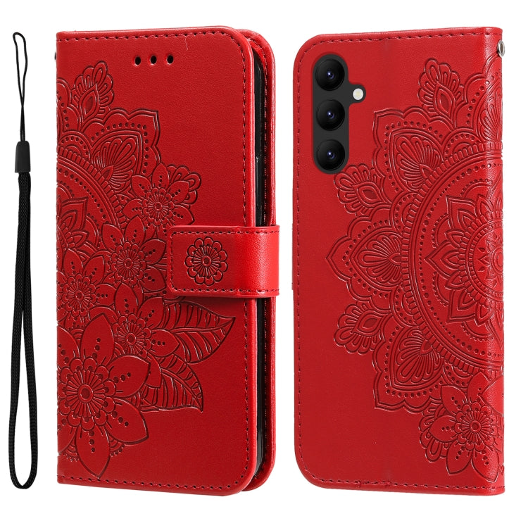 Estuche de Teléfono Samsung Galaxy A24 4G Cuero Estampado Flores 7 Pétalos (Rojo)