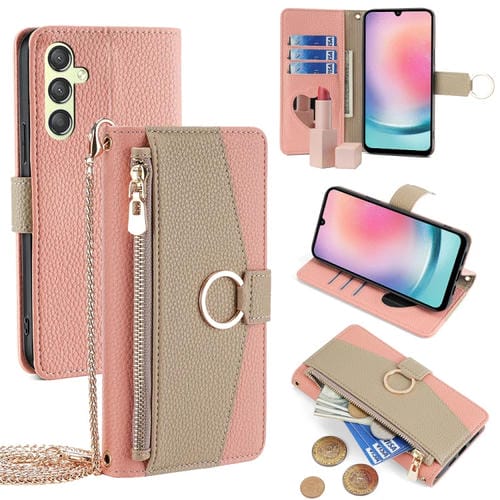 Funda para Teléfono Samsung Galaxy A24 4G Cuero Textura Litchi Cruzada (Rosa)