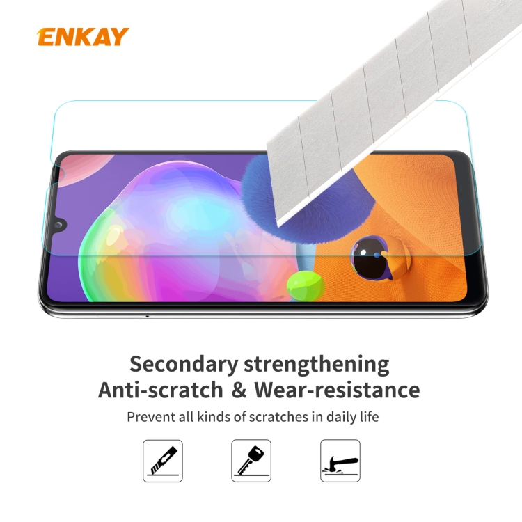 Película de Vidrio Templado Enkay Hat-Prince para Samsung Galaxy A31 0.26mm 9H 2.5D Borde Curvo (5PCs)