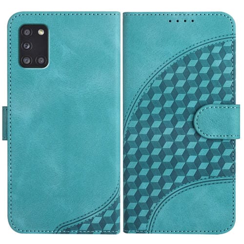 Funda para Teléfono Samsung Galaxy A31 Yx0060 Cuero Relieve Cabeza de Elefante con Cordón (Azul Claro)